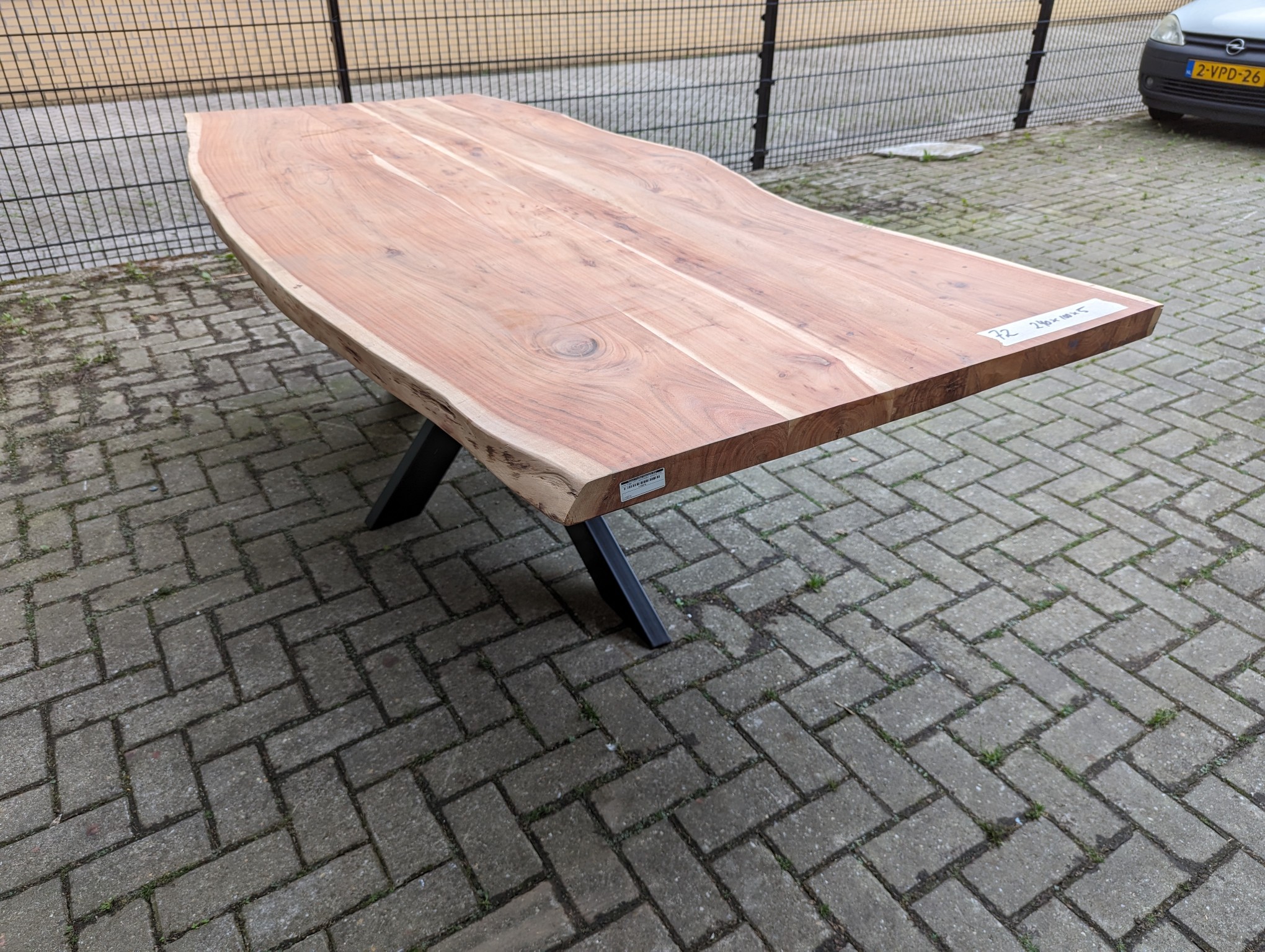 Boomstamtafel acacia 240x100x5cm metaal spinpoot