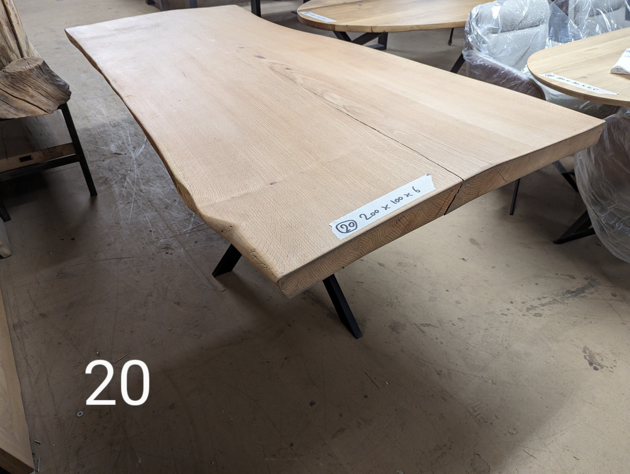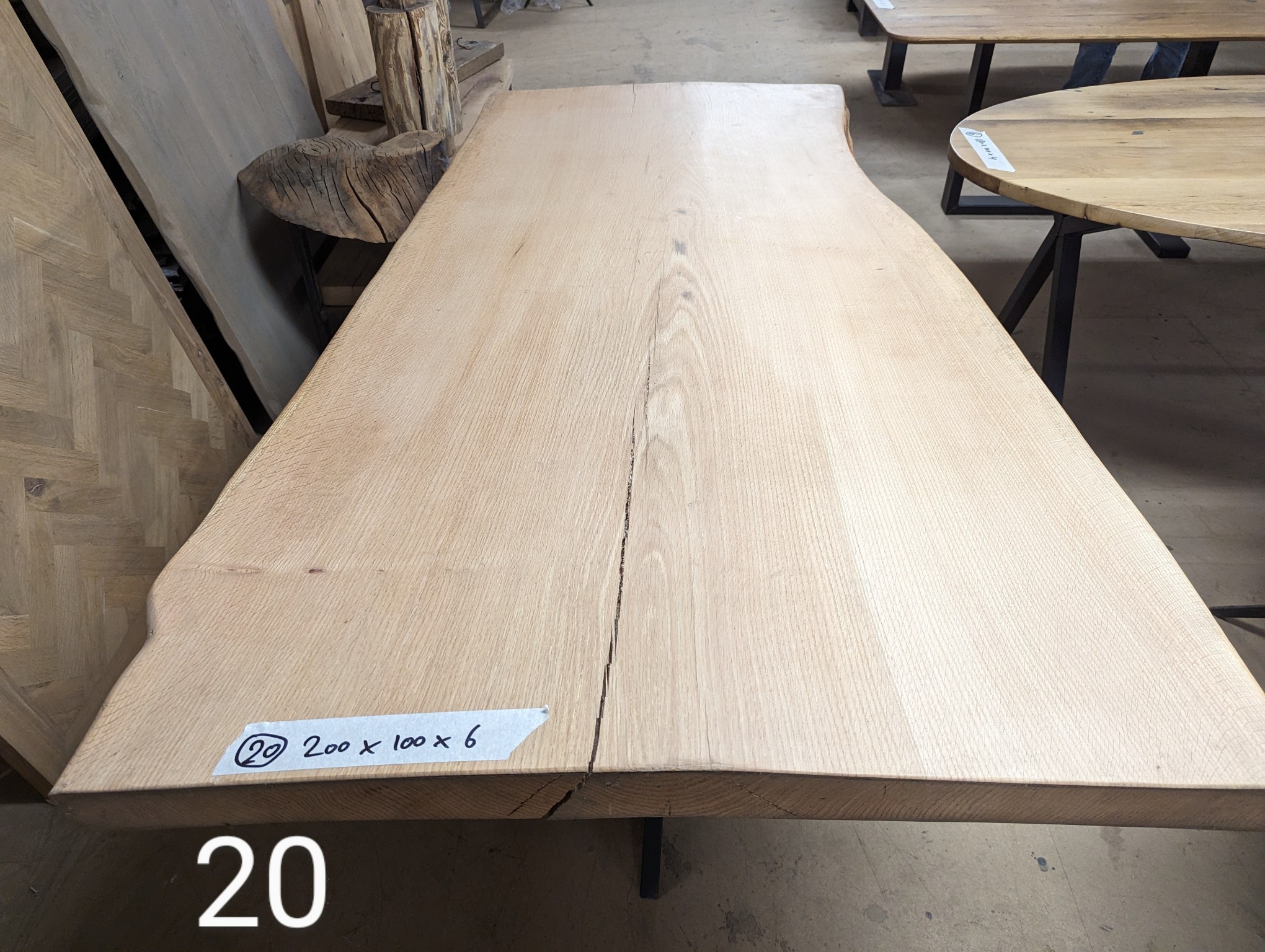 Boomstamtafel eiken 200x100x6 metaal spinpoot