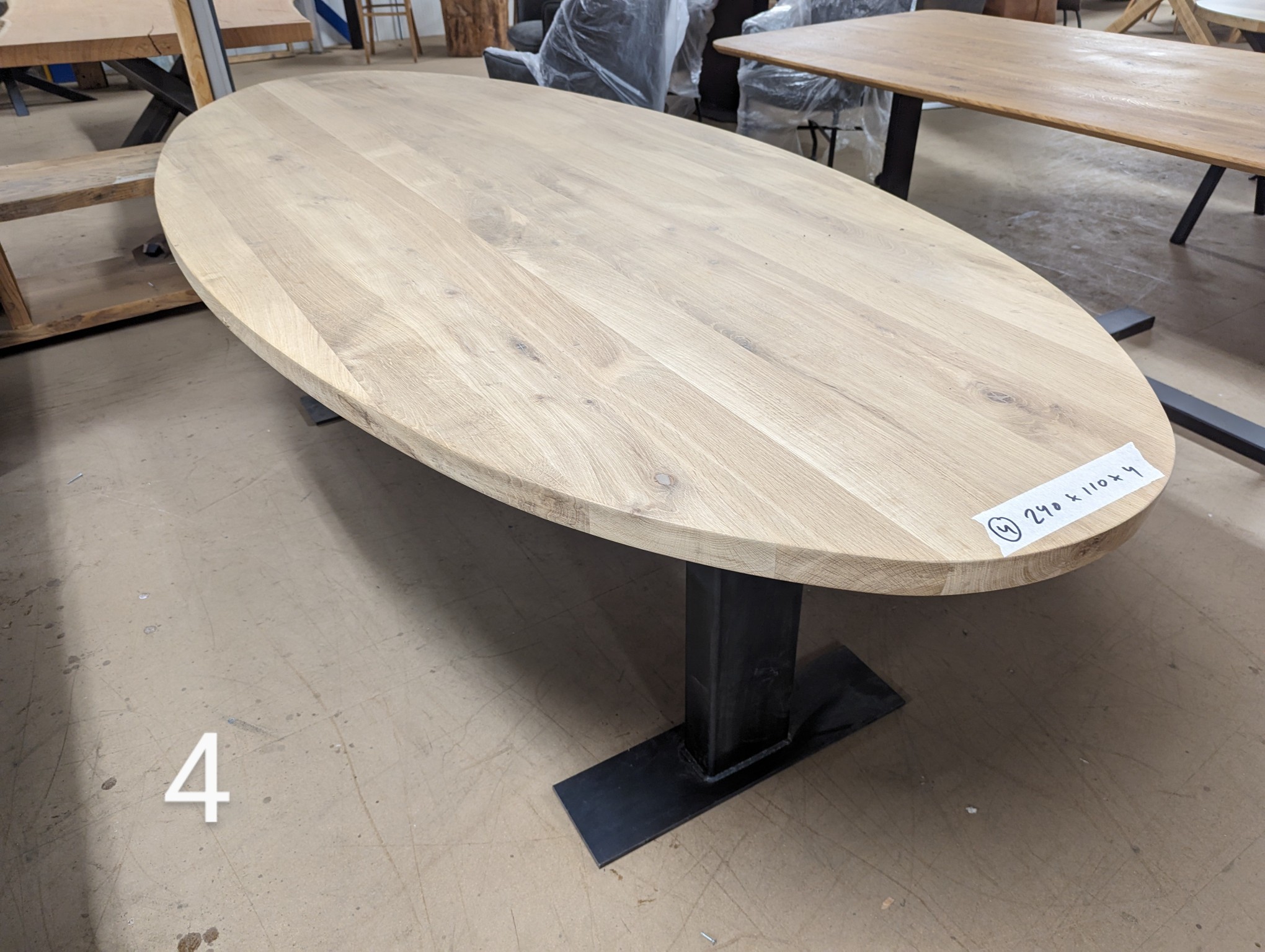 Tafel nieuw eiken ovaal 240x110x4cm metalen T poten