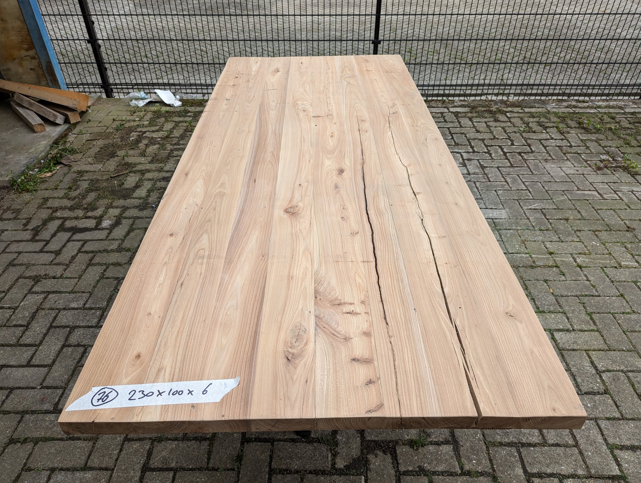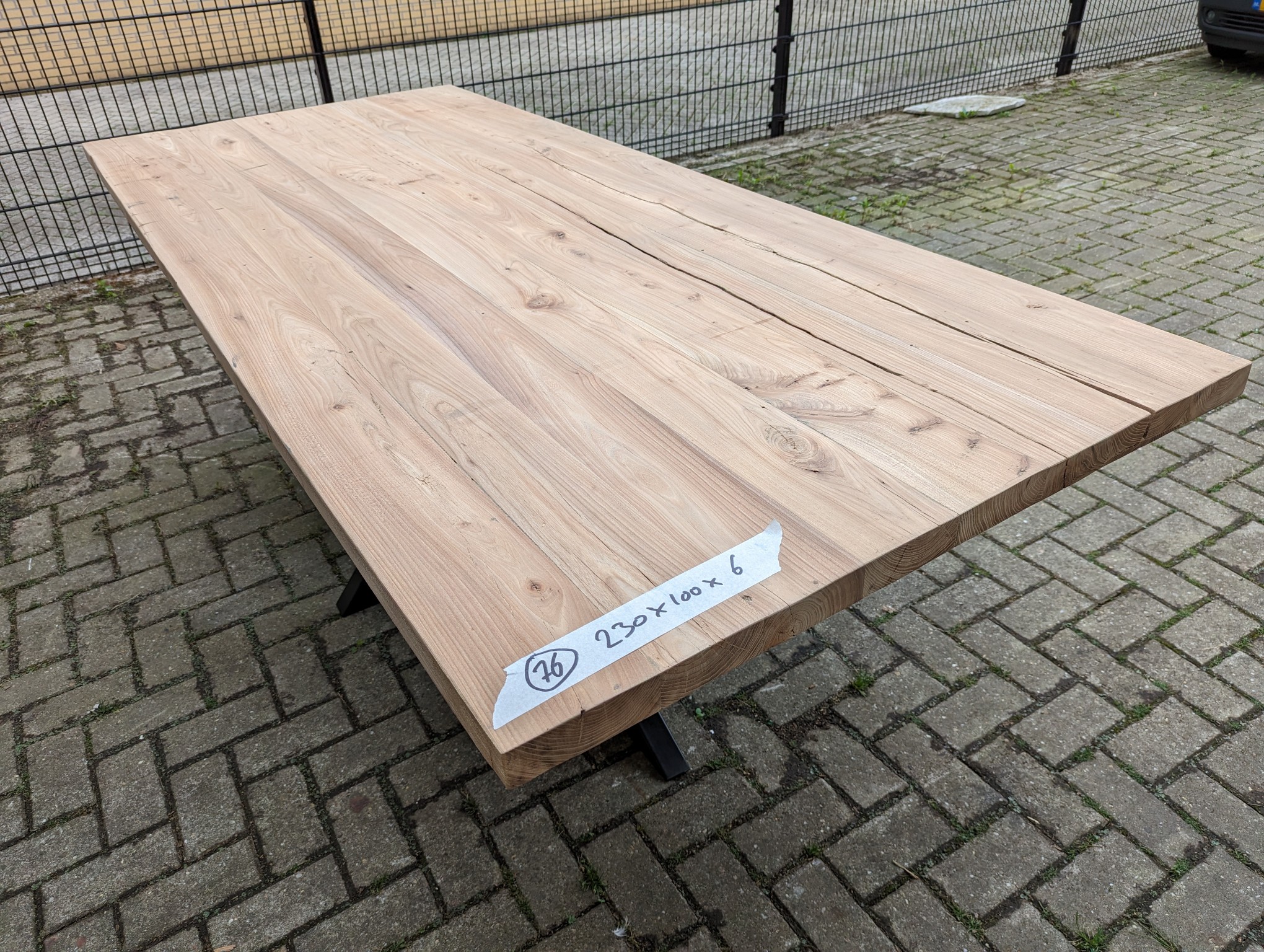 Tafel oud iep 230x100x6cm metaal spinpoot