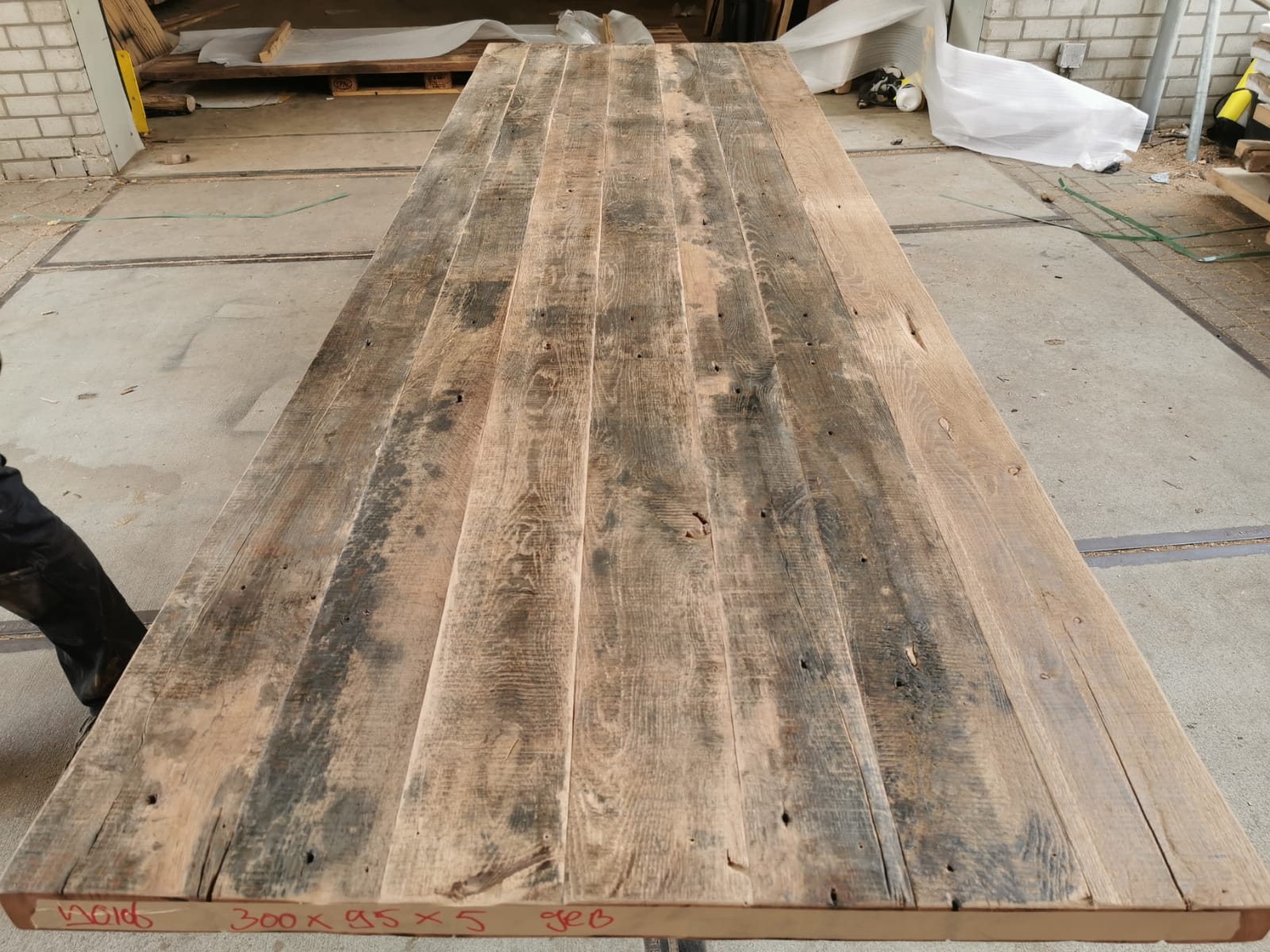 Geborsteld oud eiken 3,00 * 0,95 * 0,05 Tafelblad geborsteld oud eiken Donkere uitstraling Relatief vlakke structuur (voor geborstelde planken) Uitverkocht Artikelnummer: 106-6 Categorie: Uncategorized