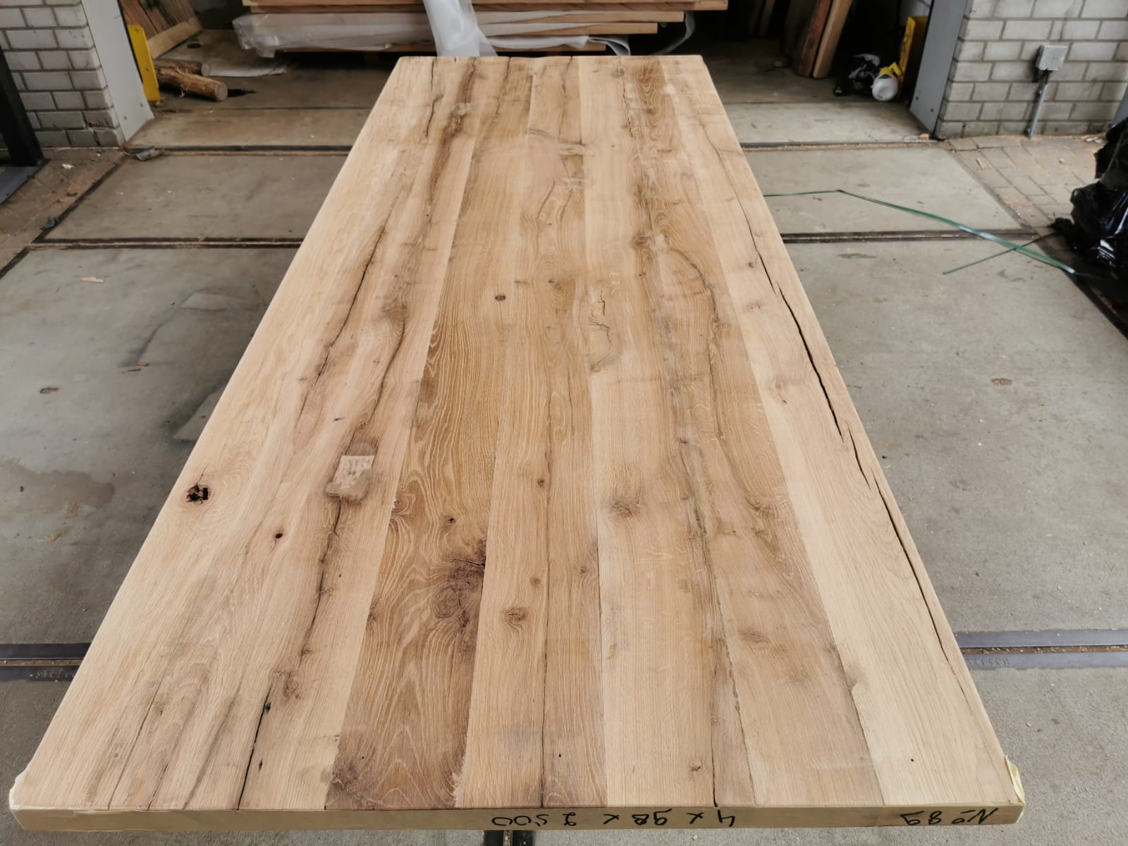 Geschaafd oud eiken 2,50 * 0,98 * 0,04 Tafelblad geschaafd oud eiken Mooie vlakke structuur Wel wat diepe nerven, maar niet storend Kan op aanvraag worden afgelakt Uitverkocht Artikelnummer: 89-6 Categorie: Uncategorized