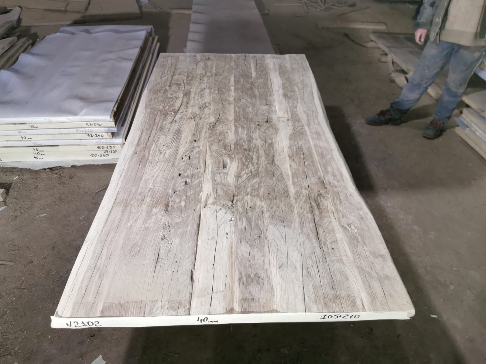 Tafelblad oud eiken geborsteld 2,10 x 1,05 x 0,04
